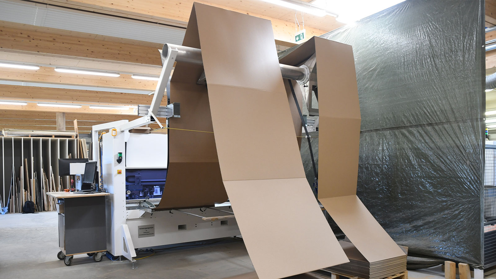 These customers have addresses in London, New York, Vienna. To ensure that the high-cost furniture arrives safely, it is packed with meticulous care using a cardboard cutting machine from HOMAG, which also observes the footprint of the made-to-measure items.