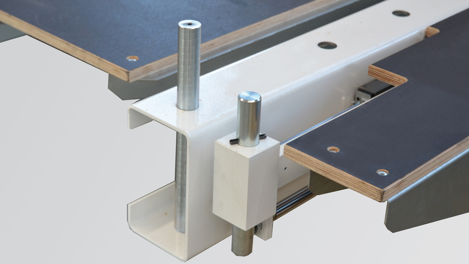 Versatility on the go: The two assembly tables can be positioned perfectly using the integrated running gear to allow simultaneous work on both tables.