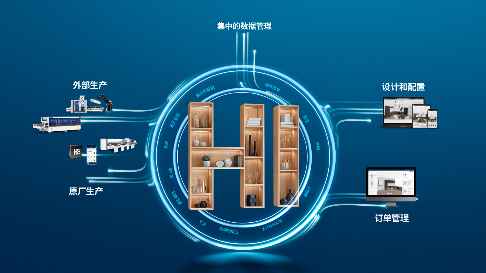 HOMAG 推出的 HOMAG INTELLIGENCE(简称 HI)并非一个单独的软件,而是一个开放式平台。该平台可将家具销售与生产过程中产生的所有数据无缝连接,且不受机床设备、现有软件环境和企业规模限制。