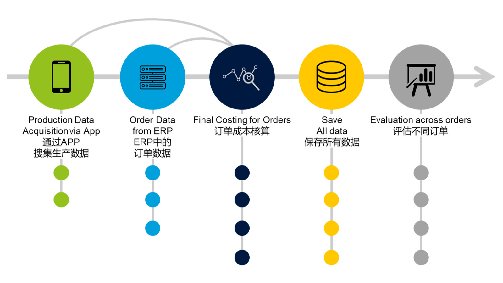 自今年春天以来位于Pfalzgrafenweiler著名的门板生产厂商Reichert Holztechnik GmbH & Co. KG使用了一款为其自己开发的app,在整个生产流程中用来记录数据并应用成功。在此app中,及时进行事后计算非常重要。一方面,它可以详细地评估各个订单中高效和低效的工序。另外,关键指标是基于所有的订单加工时间和物料量自动计算的。为此,员工首先使用该app对每一道工序计时。在生产中使用智能手机,该方案灵活又简单:“条形码扫码-开始-停止-计时”。诸如在设备上的调试时间或其他订单信息等更多详细信息也可以记录在各个工作站上。结合来自ERP系统的详细订单数据,只需单击鼠标,即可生成非常精美的图表。每个订单都可以详细的评估所需的时间、物料和相应的成本。这使得企业可以在第一时间检查订单和整个产品线来提高成本效益。这些数据接下来都会集中保存。这就方便查看多个客户订单在各个生产流程环节中的关键指标。这些关键指标可用来调整产品初始报价中的标准值。