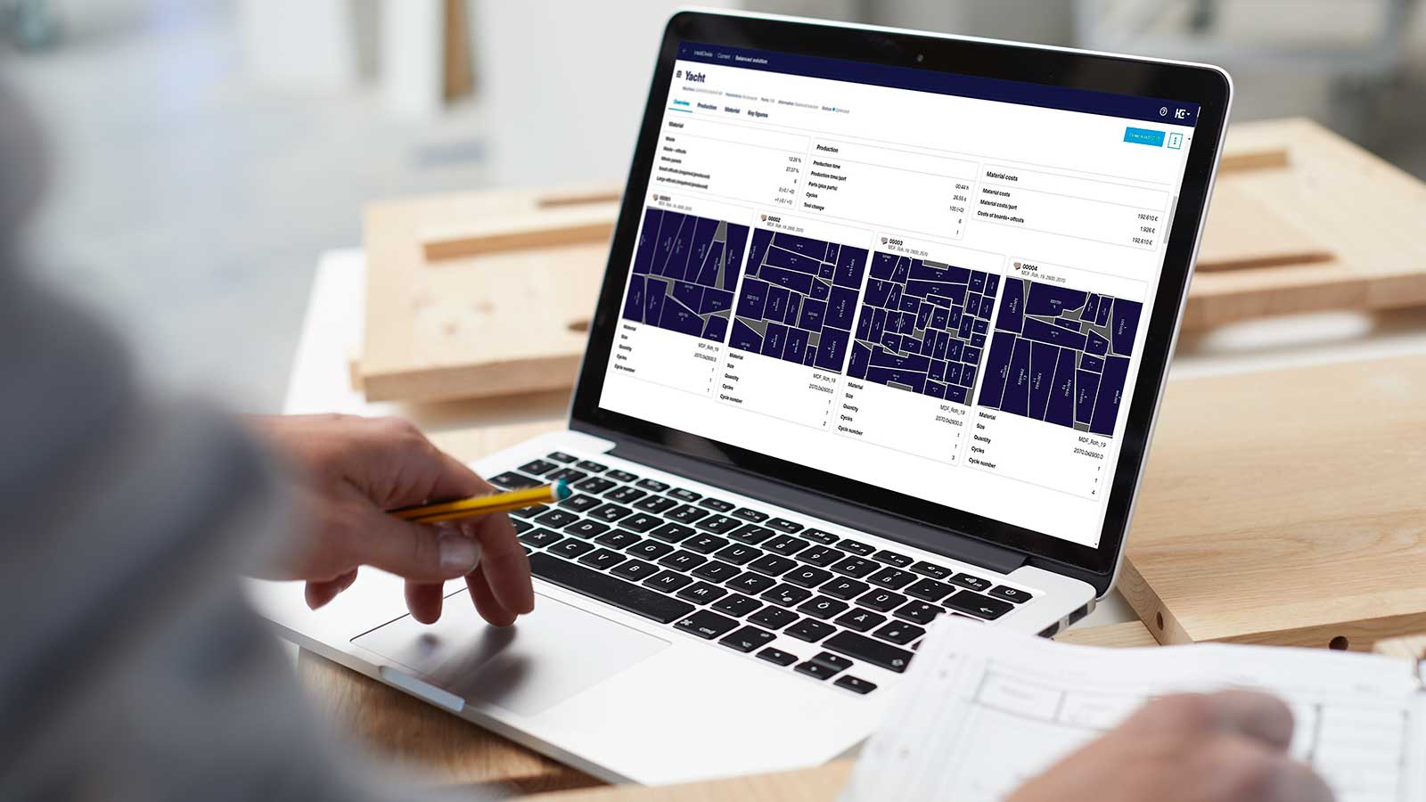 Fleksibel anvendelse: Kan anvendes til firkantede dele og friformdele. Du skal blot uploade woodWOP-programmerne, vælge materiale og starte optimeringen.