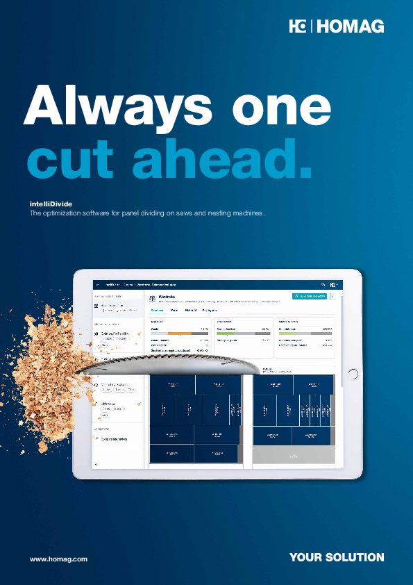 Egnet til alle save: intelliDivide kan anvendes fleksibelt til alle savtyper. Hvis du har en HOMAG-pladeopdelingssav, er alle nødvendige oplysninger til opskæringsprocessen allerede tilgængelige direkte i intelliDivide – manuelle mellemtrin spares væk. Optimeringen overføres automatisk til HOMAG-maskinen med et klik.