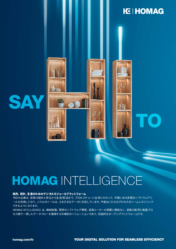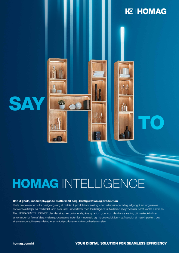 Vi siger "HI" til HOMAG INTELLIGENCE – til den første og eneste cloudbaserede platform på markedet, der tilbyder en problemfri proces fra møbelsalg til produktion på maskinen. Perfekt netværk og med central datahåndtering.
