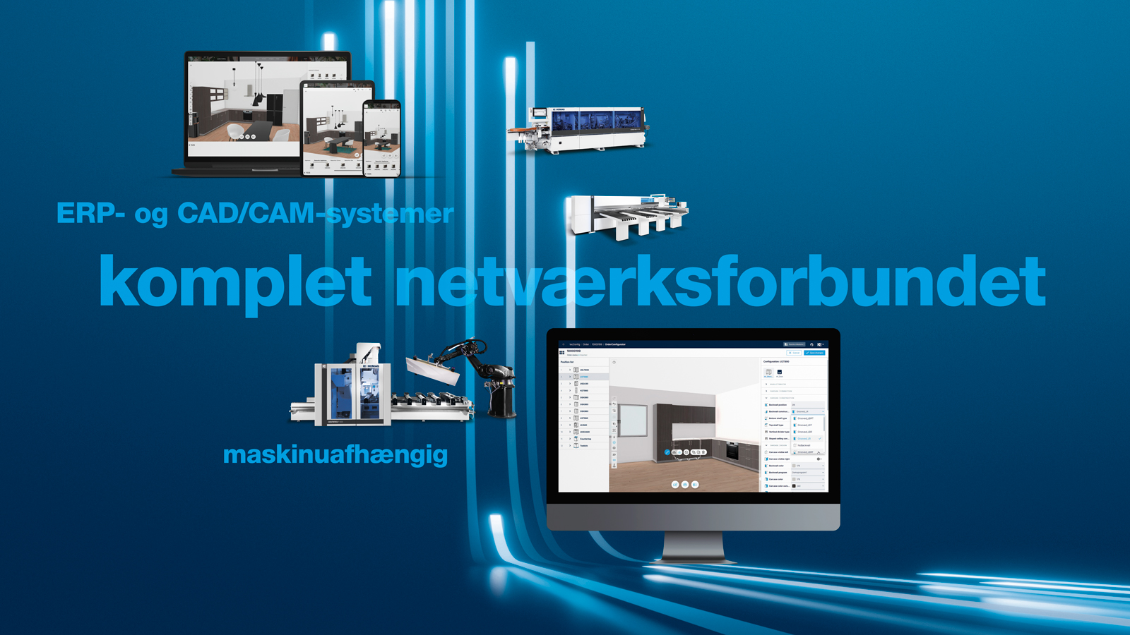Med HOMAG INTELLIGENCE tilbyder HOMAG ingen separat software, men en åben platform, som uden problemer forbinder alle opstående data i møbelsalg og -produktion med hinanden – uafhængigt af maskinparken, det eksisterende softwarelandskab og driftsstørrelse.