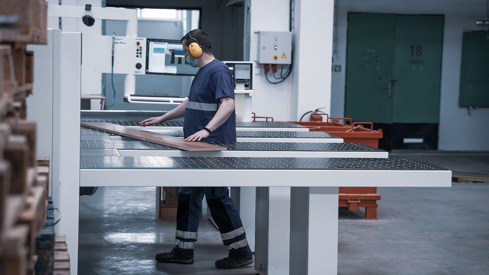 Production in Martinov is focused on working efficiently with large quantities of material. That is also why the 12-meter automatic storage STORETEQ S-200 is used for the basic distribution of material to the orders, which not only ensures the distribution of material for the panel saw, but also keeps track of the parts through the production process. The advantage of STORETEQ is that it is easy to connect to other machines in the production chain. In this case, it is a powerful panel saw SAWTEQ B-200 with the DustEx option for easier handling of boards and protection of boards from scratches. Due to the intuitive user interface and the ergonomic structure of the SAWTEQ B-200, the operator can easily cut a large amount of material. Of course, it includes the necessary label printer. The applied lables allow tracking of all parts in the production.