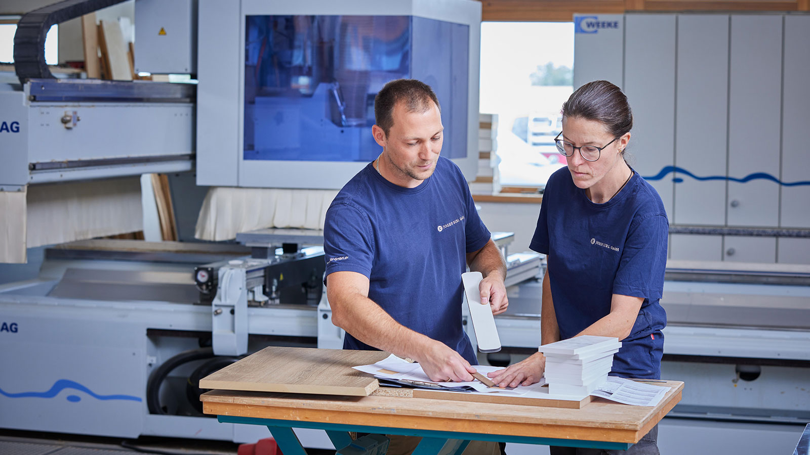 The technician is thrilled, Josef Eibl too. Little has changed in that. Today, the master joiner from Lower Bavaria still raves about how with the CNC, he can get zinc plating that is so precise that it takes grooves to get glue in between at all. Or that his employees cut hidden cable ducts for integrated lighting concepts into wooden tables.