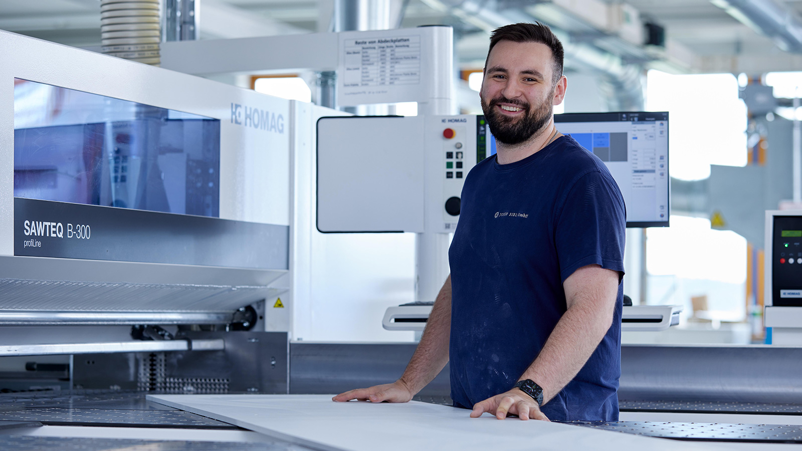 The following Monday, his friend leaves his job and starts in Aham. When the machine arrives, the HOMAG technician is initially flabbergasted. A new machine purchased – without any training. An absolute no-go, but Josef Eibl is sure that he already has the CNC specialist in-house. And that's exactly the case. He quickly trims a front door frame in segment arch shape – according to the technician, this is actually outside the machine's range of possibilities.