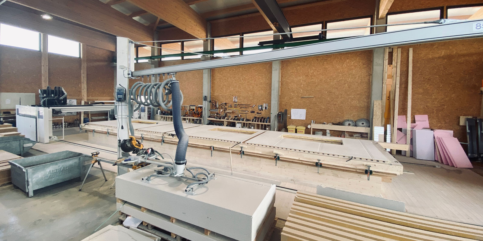 We are experiencing a significant increase in demand for the construction of detached houses, which we were unable to meet with our staffing levels and the existing capacity. And well-trained, skilled workers are still hard to find. Therefore, we decided to automate element production and secure our production for the future. We are a small carpentry business and maximizing profits is not one of our primary objectives. We were mainly concerned with improving the workflow while remaining flexible. Our planning was based on approximately 10 houses per year, but the multifunction bridge has already improved the cost-effectiveness of our work, even if it has only been in use for less than twelve months.
