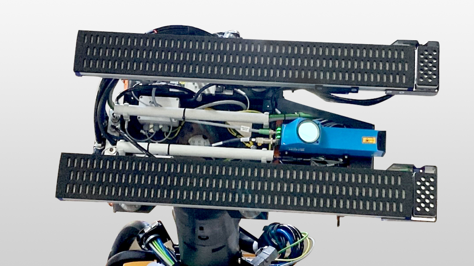 Safescan safety concept - the focus is on output and productivity. The machine stops when entering the safety area. After leaving the safety area and confirmation at the operating terminal, the machine continues processing.