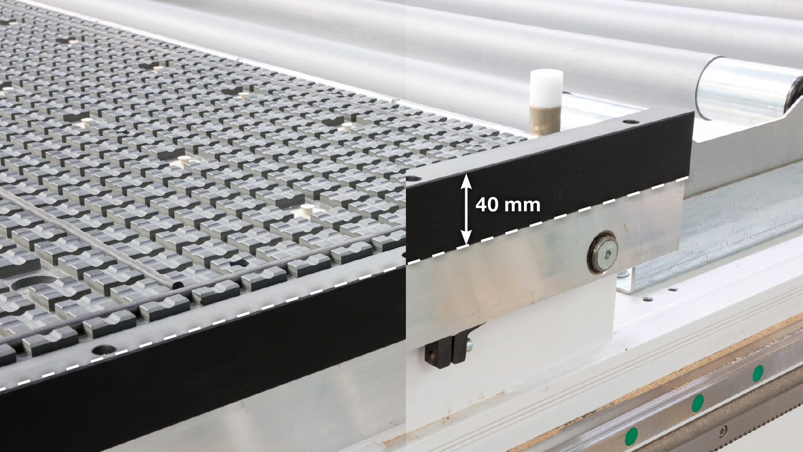 Automatically selectable vacuum field divisions of the table. Adapted to standard market panel sizes.