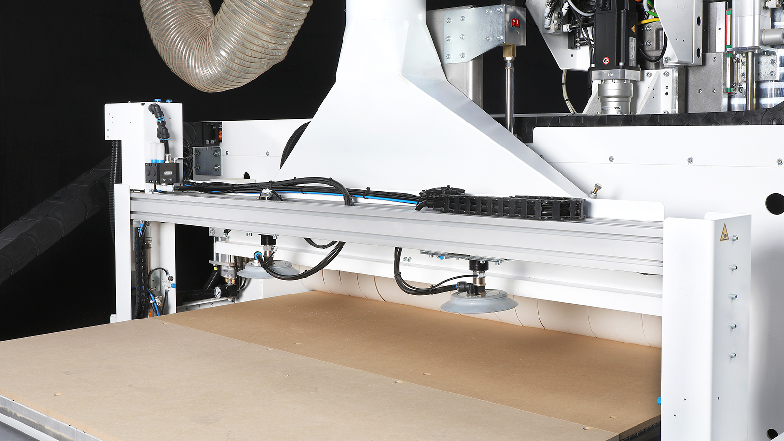 The new generation of the CENTATEQ N-210 represents the entry into the nesting sector. A major step was the reduction of the installation area by 25 % compared to the previous version. Tight spaces at the customer's premises are no longer an obstacle. The machine has been extended to include intelligent optimization with streamlined functions. The new generation works as a stand-alone machine or as part of an automated concept. The machining operations can be realized with a wide mix of units and tools. The functionality of this machine is rounded off with automation options.