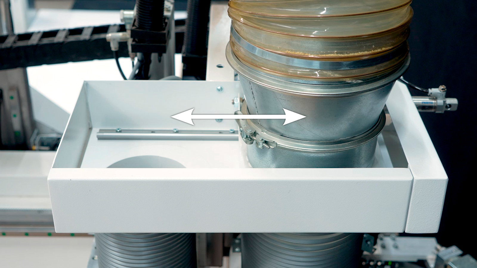 Multi-position suction on the main spindle and drilling gear for easy integration into production and reduced costs for peripherals.