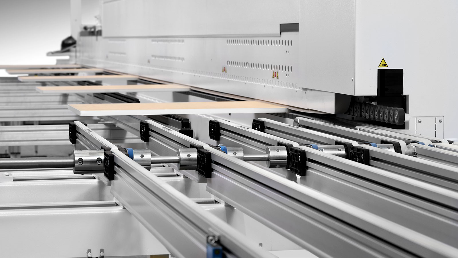 The high degree of automation of the edge banding machine enables quick and easy removal or stacking of the finished parts and ensures smooth work processes.