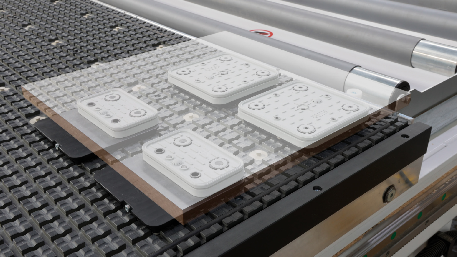 Automatically selectable vacuum field divisions of the table. Adapted to standard market panel sizes.