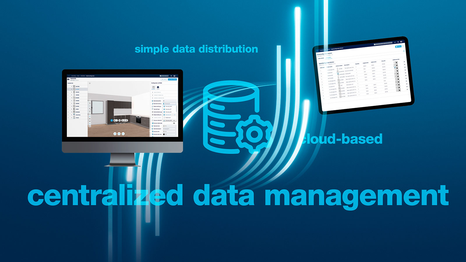 Once the furniture manufacturer has defined its articles and materials, it must always know exactly WHERE which data is located and WHICH of its systems is the leading one. In addition, it is often necessary today, for example, to create the material for the sales solution, the configuration solution and production several times. The reason is that the different systems require different information and formats. The same applies to all articles or components. The result: the order and production process is often complex, sometimes redundant and prone to errors.