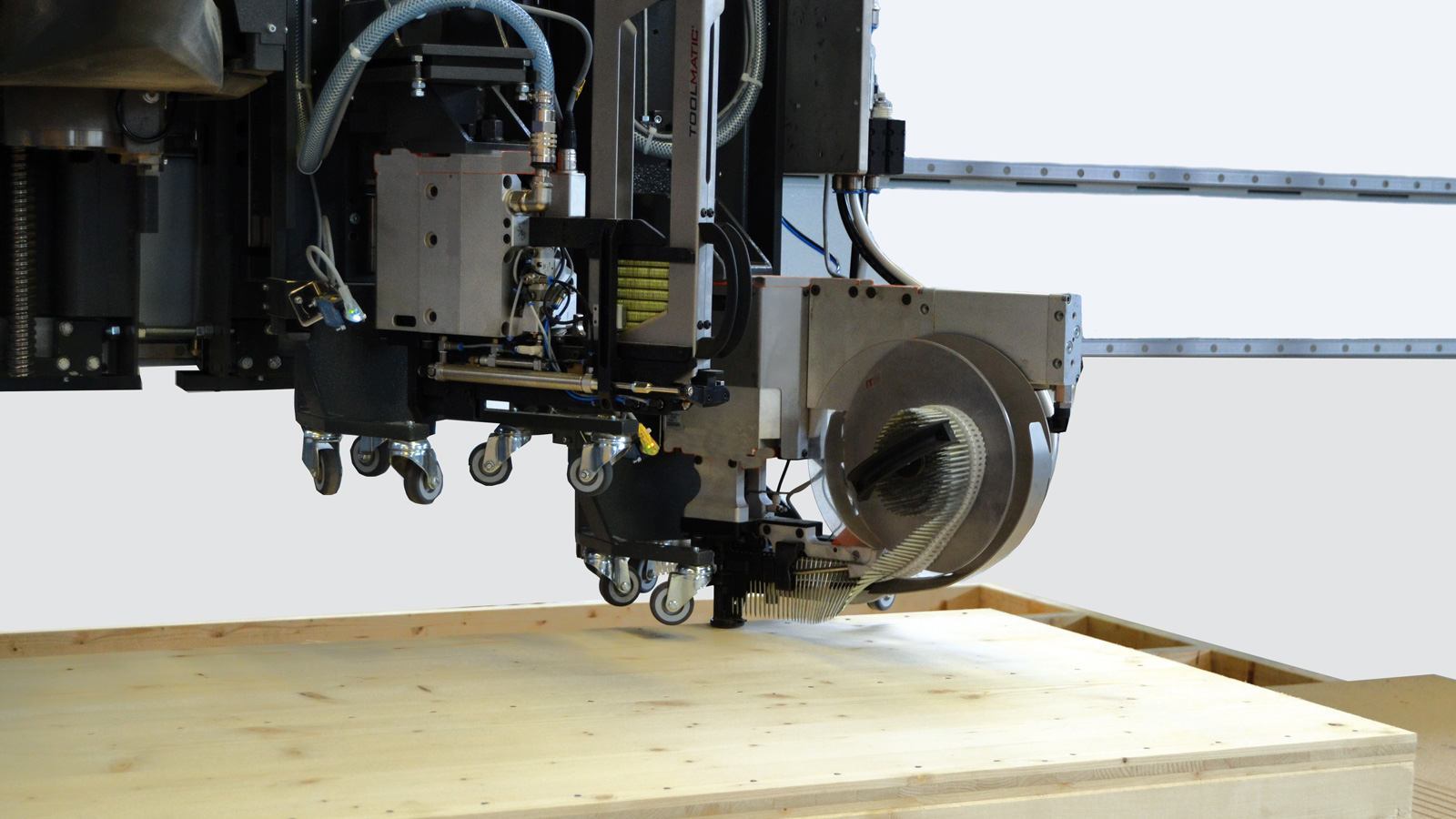 Productividad máxima: el revestimiento se puede fijar en paralelo con los dos grupos de fijación. Opcional: fijación y colocación totalmente automática de listones y cabrios en una posición
