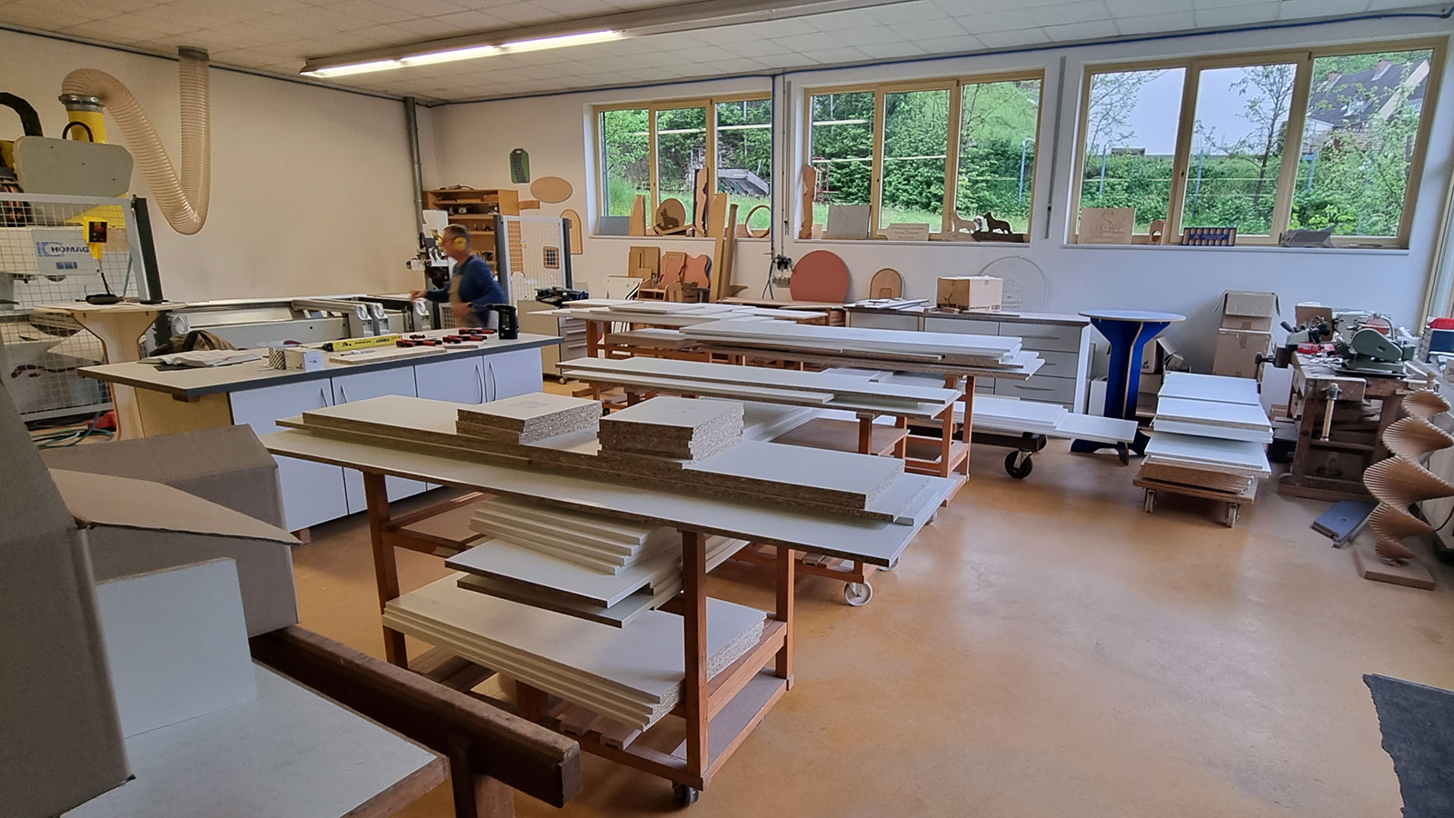 Los Schwieck, que cuentan con dos oficiales y dos aprendices, fabrican principalmente mobiliario y equipamientos de oficina para otras empresas y para clientes particulares. Aunque también reciben trabajos específicos en función del cliente, Jörg Schwieck ve el futuro de la empresa en la construcción de muebles, ya que, según explica, este ha sido el ámbito que más crecimiento ha experimentado desde que empezaron a utilizar la nueva sierra seccionadora de tableros de HOMAG. "La SAWTEQ B-130 (actualmente S-100) es una turbosierra".