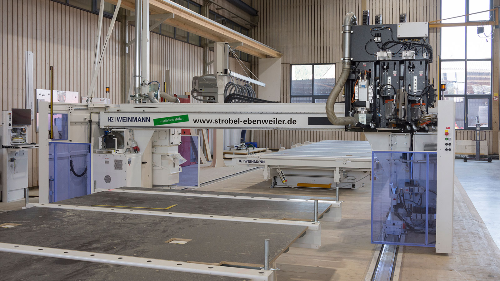Además de la precisión, otro de los aspectos fundamentales para Johannes Strobel era la ergonomía: "Para mí era muy importante poder facilitar el trabajo de mis empleados. Me interesaba que ya no tuvieran que arrodillarse sobre los elementos, y que pudieran dejar de colocar los tableros a mano." Esto tiene una consecuencia adicional: ahora, puede encargar a los empleados de más edad que ya no quieren trabajar en la obra tareas que se llevan a cabo en la nave, y, así, mantenerlos en la empresa durante más tiempo. Vista la escasez de mano de obra en la región, esto es una clara ventaja. Sobre todo teniendo en cuenta que, gracias a la automatización, se reduce el personal necesario en la fabricación, que Strobel puede emplear ahora en otras áreas. A finales de 2022, Johannes Strobel se puso en contacto de nuevo con el empleado de WEINMANN responsable: "Es de esta zona, y conoce nuestra empresa desde hace años. Por eso, no hubo mucho que aclarar en lo referente a la planificación". Puesto que la gama de productos es muy variada, para él era importante, entre otras cosas, que en la nueva línea de producción se pudieran mecanizar también elementos de techo y tejado.
