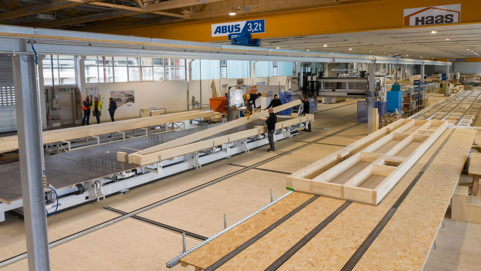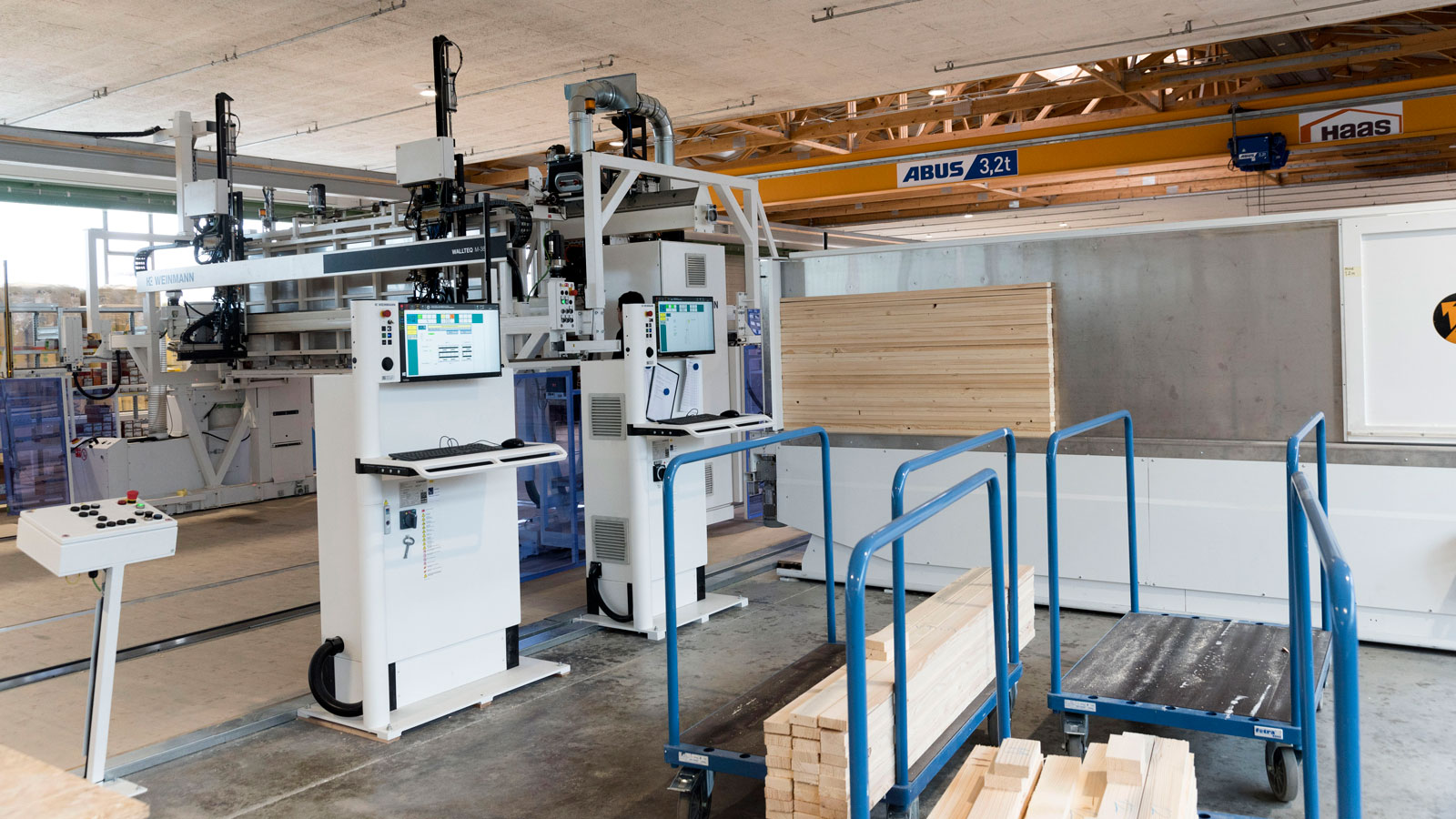 Por último, cabe señalar que en Haas se simulan y optimizan digitalmente todos los procesos de producción antes de pasar por el proceso de fabricación de maquinaria real. El uso de Autodesk Revit, escáner láser y taquímetro en la construcción de objetos, en la digitalización de todos los procesos supone ir un paso más allá que la mayor parte de proyectos similares en Alemania. Actualmente, en la instalación de producción se contempla la ampliación automatizando la limpieza, y se piensa también en un centro de mecanizado de tableros. Aliviará los posibles cuellos de botella en determinadas configuraciones de mecanizado. No se piensa en adquirir robots: "están demasiado optimizados según los tiempos de ciclo y, por tanto, son demasiado rígidos, demasiado inflexibles". En cuanto a la futura evolución de la empresa, Xaver A. Haas ve un cambio en el peso de las distintas áreas de negocio: "Va a ir más hacia la construcción de viviendas. Invertiremos menos en la construcción de viviendas unifamiliares y entonces las cantidades se volverán a equilibrar. A largo plazo, la tendencia continúa hacia la construcción de viviendas". La política de la empresa de mantener abiertas todas las opciones en distintos sectores ha dado sus frutos.