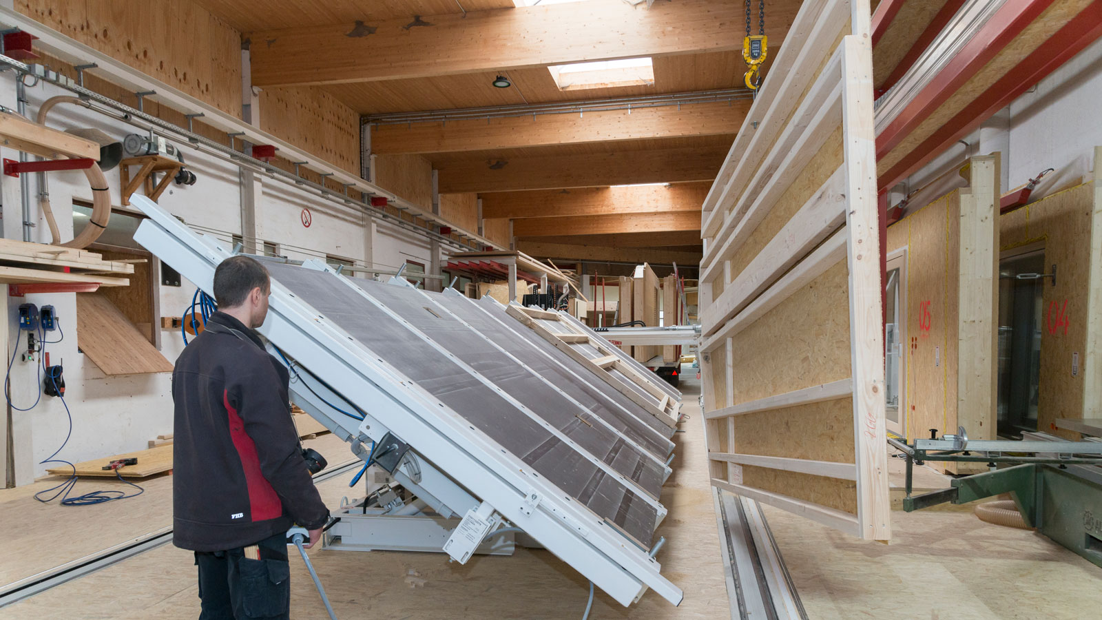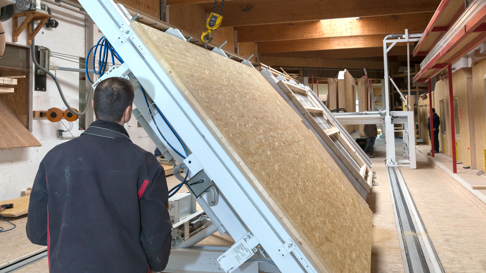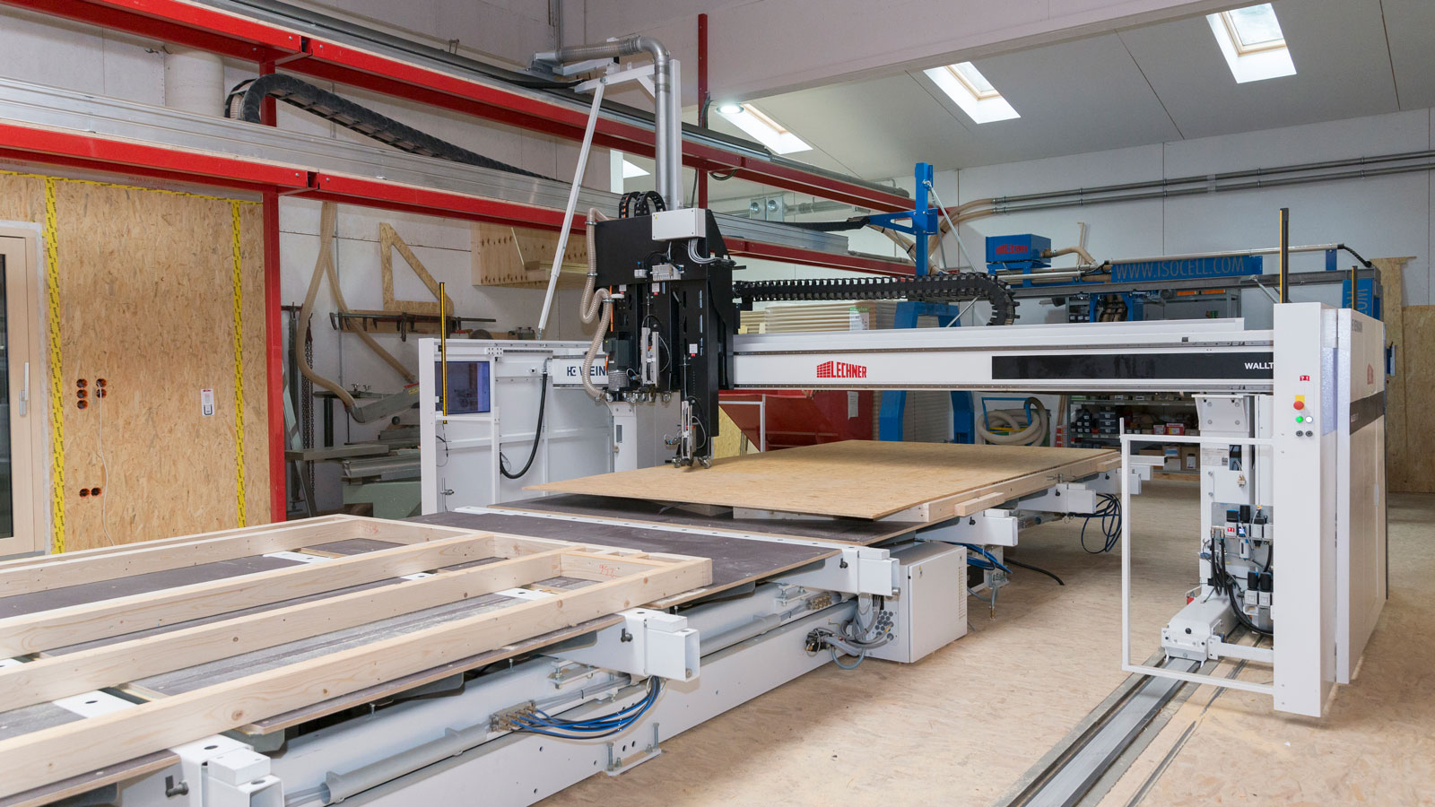 Cette tendance n'a pas été le facteur décisif pour l'automatisation. Lorsque les deux directeurs ont investi dans le pont de maître charpentier, ils visaient en premier lieu l'amélioration des conditions de travail. Bien sûr, la pénurie chronique de personnel a également joué un rôle dans ce processus, car il est devenu difficile à Buchbach de recruter des experts dans la construction bois. Il a également été question de flexibilité, notamment en ce qui concerne les postes de travail. En effet, l'un des collaborateurs éprouvés avait exprimé le souhait de réduire son temps de travail hebdomadaire à 30 heures. À l'époque, cela n'a pas été possible, car l'équipe de production manuelle ne comptait que deux membres complémentaires et interdépendants, et il en faisait partie. L'un des objectifs de l'investissement était donc d'automatiser la production d'éléments de sorte qu'une seule personne puisse s'en charger. Quatre mois après la mise en service du WALLTEQ M-120, cet objectif est presque atteint. Johann Lechner, directeur général, ajoute : « Nous devons encore bien organiser les processus, et le deuxième employé pourra alors passer de la production d'éléments à la finition et à la production d'éléments de toit et de plafond, et réduire son temps de travail comme il le souhaite. » La flexibilité de l'entreprise a également augmenté dans d'autres domaines : le pont de maître charpentier lui permet de traiter plus rapidement les commandes urgentes. Étant donné que deux employés ont été formés à utiliser la machine, il est également possible de travailler en deux équipes si les afflux de commandes doivent être traités rapidement. « En fonction de la commande, nous devrions déplacer la finition sur le chantier », explique Thomas Lechner, qui ajoute : « L'installation de production nous confère une très grande flexibilité et nous offre plus d'options qu'auparavant. »