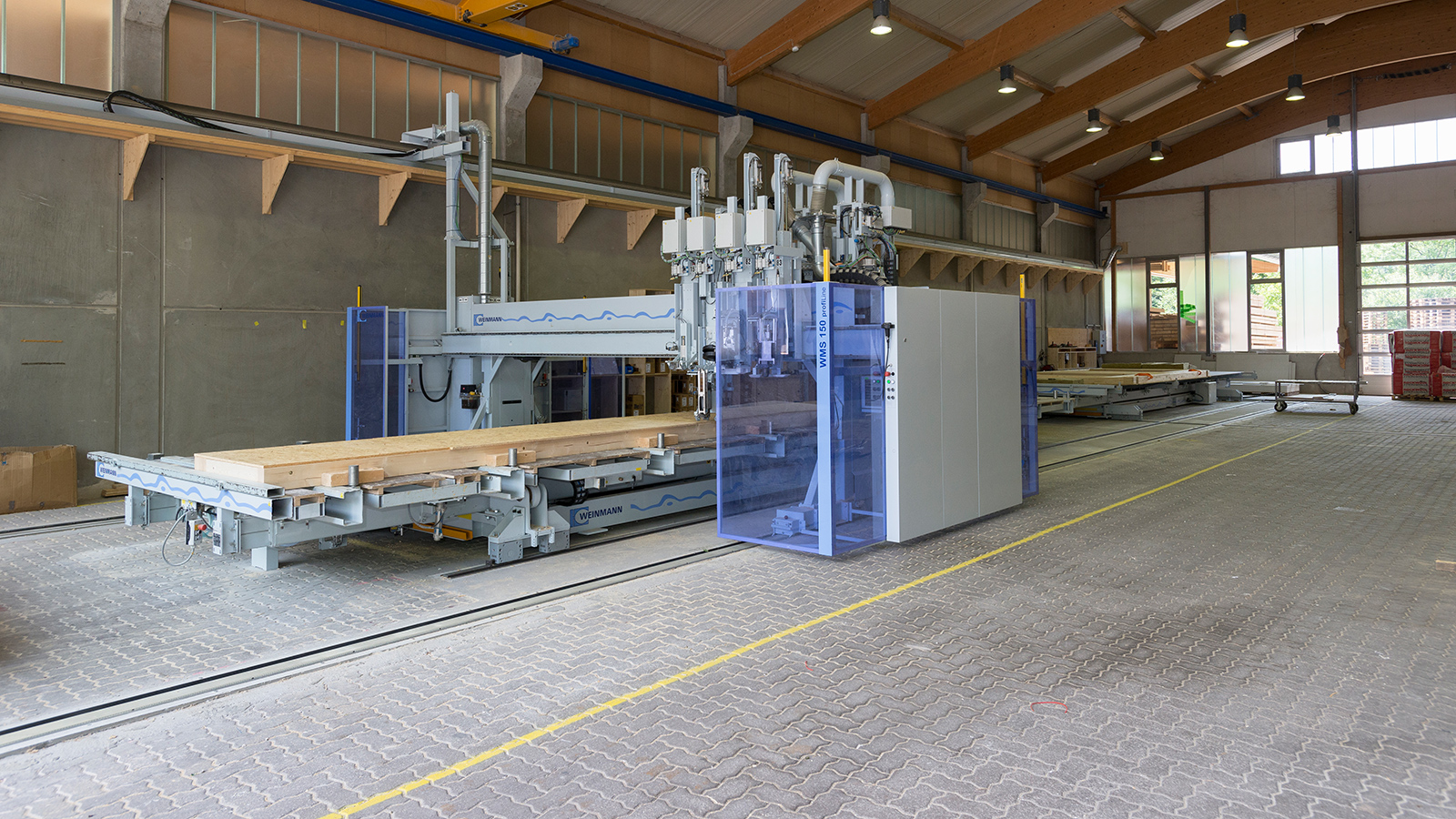 Si un tel contrat reste exceptionnel pour Roland Zimmermann, son cahier des charges accordait toutefois une grande importance à la flexibilité, raison pour laquelle il cherchait à automatiser la fabrication de ses éléments. En effet, aidé de ses dix collaborateurs, il ne se contente pas de proposer leurs services dans les segments traditionnels de la charpenterie, tels que la conception de charpentes, la rénovation, l'isolation de toiture ou encore la construction de halls. Grâce au bouche-à-oreille, aux appels d'offres et à sa collaboration avec un promoteur, il s'est également spécialisé dans la construction de maisons d'habitation, en respectant un rayon d'une heure de trajet environ. Au total, ce sont dix à quinze chantiers qu'il mène à terme chaque année, et ce, « dans toutes les configurations », non seulement parce que le charpentier livre des éléments de cloison avec ou sans espace d'installation, dans des matériaux et des épaisseurs d'isolation variés, mais aussi et surtout car il met de temps à autre la fabrication d'ossatures en bois de côté au profit des supports TJI ou d'éléments de bois contrecollé qui sont dotés d'une isolation extérieure sur le chantier. La WMS 150 s'est déjà illustrée dans plusieurs projets : elle a ainsi notamment fraisé des panneaux OSB destinés à un coffrage de gros-œuvre, ou encore formaté des panneaux à trois couches avec différents rainurages envoyés par la suite à Singapour par conteneur pour créer un voligeage.