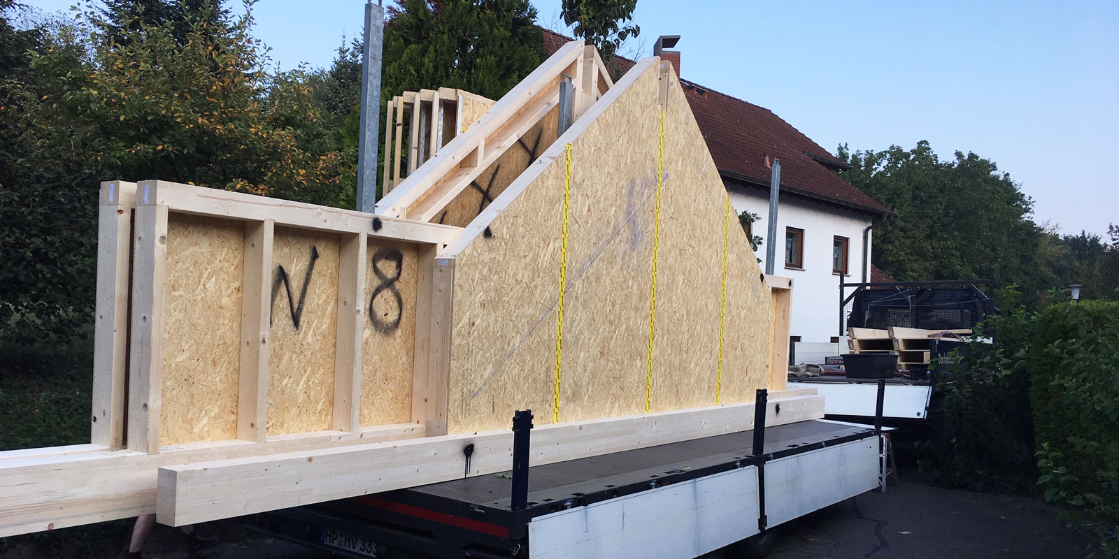 La société Holzbau Vock n'utilise pas la table de maître-charpentier uniquement pour la fabrication des éléments de cloisons. Elle l'utilise également pour la fabrication d'éléments tels que les mâchoires de chiens-assis, très courantes dans le cadre des surélévations. Dans la mesure où la table de maître-charpentier dispose de deux circuits de serrage, les deux mâchoires de chiens-assis peuvent être serrées et réalisées simultanément. A l'avenir, l'entreprise de charpentes souhaite également fabriquer les éléments de toit et de plafond sur la table de montage. Une extension avec un pont de maître charpentier est envisageable. Ce point était très important pour Stefan Vock lors de l'investissement, car les perspectives de développement de l'entreprise sont très positives. Dans cette optique, Holzbau Vock a créé une bonne base avec la table de charpentier.