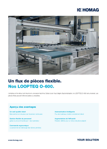 Une machine qui associe un empileur et un retour de pièces. Grâce à son haut degré d'automatisation, le LOOPTEQ O-600 est universel. Les pièces finies peuvent être évacuées ou empilées. Le LOOPTEQ O-600 convient tout particulièrement aux clients ayant un grand nombre de pièces et une production à haut degré d'automatisation.