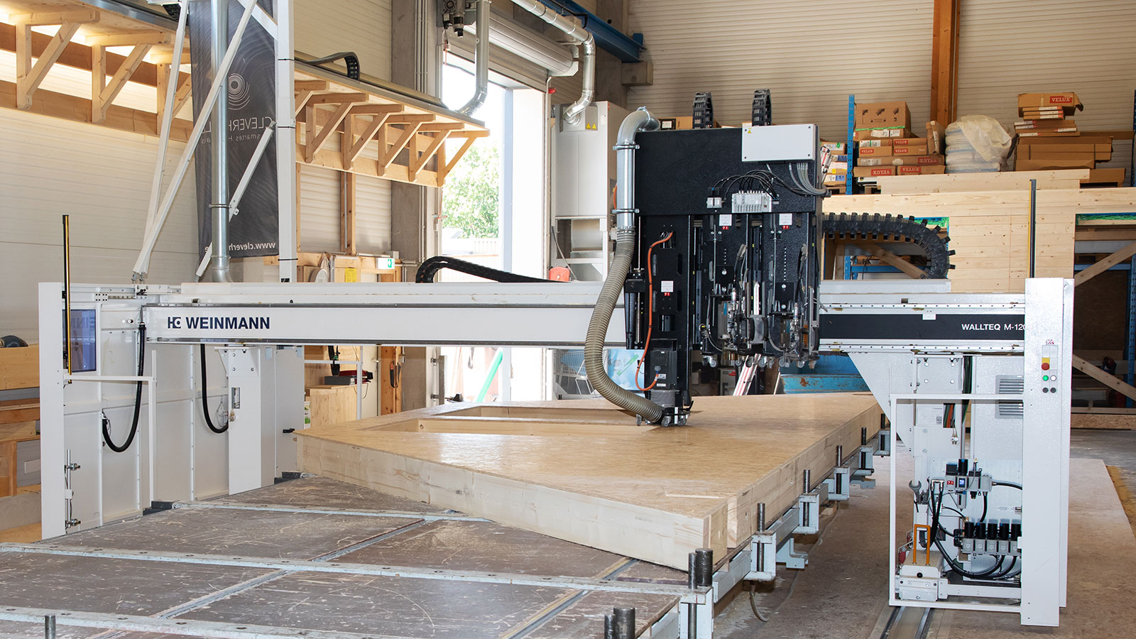 E perché una soluzione relativamente piccola? "Per noi WALLTEQ M-120 è quasi un progetto pilota per passare lentamente all'automazione. Grazie all'impianto di sezionatura, eravamo già pronti per le operazioni preliminari di produzione prima dell'automazione, ma con il piccolo ponte multifunzionale da carpenteria, quindi con un piccolo investimento di denaro, volevamo acquisire esperienza con il trasferimento dei dati e sviluppare il processo fino a eliminare tutti i problemi". Poiché WALLTEQ M-120 è adatta alla produzione di elementi di pareti, tetti e soffitti, offre le condizioni ottimali per raggiungere questo obiettivo: consente un livello di prefabbricazione molto elevato per tutti i componenti e anche l'elaborazione di tutti i dettagli necessari. E poi? "Più avanti probabilmente sostituiremo la macchina con una più grande o la manterremo proseguendo in futuro con due linee: una per le pareti, l'altra per gli elementi di tetti e soffitti. In questo modo siamo flessibili per i futuri sviluppi e abbiamo già spostato i binari necessari nel capannone".