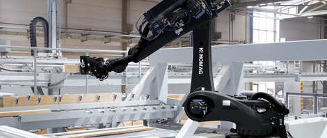 Elevata produttività grazie all'alimentazione automatica del materiale nella stazione per la produzione di strutture per pareti a telaio.