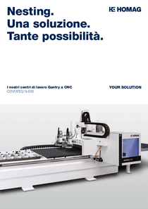 Le nostre macchine Nesting permettono di lavorare pezzi di forme variabili ottimizzando gli scarti. L’utilizzo classico del nesting sono la lavorazione di elementi di mobili nonchè il taglio e la foratura delle ante. Diverse possibilità per l’automazione della movimentazione dei materiali garantiscono un grande risparmio di tempo e una maggiore efficienza di produzione.
