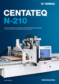 La nuova generazione di CENTATEQ N-210 rappresenta l'ingresso nel settore del nesting. Molto significativa in questo senso è stata la riduzione del 25% della superficie di appoggio rispetto alla versione precedente. Gli spazi ristretti presso il cliente non costituiscono più un ostacolo. La macchina è stata ampliata con un'ottimizzazione intelligente dalle funzioni semplificate. La nuova generazione funziona come macchina singola o come componente di un concetto di automazione. Le lavorazioni possono essere realizzate con un'ampia gamma di gruppi e utensili. La funzionalità di questa macchina viene completata da diverse possibilità di automazione.