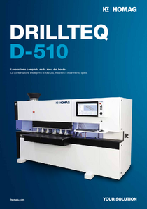 Che sia una macchina singola o un prodotto complementare in collegamento con un centro di lavorazione CNC, DRILLTEQ D-510 permette la lavorazione completa e precisa nella zona del bordo grazie al raggruppamento intelligente di perforazioni, tasselli e fresatura.