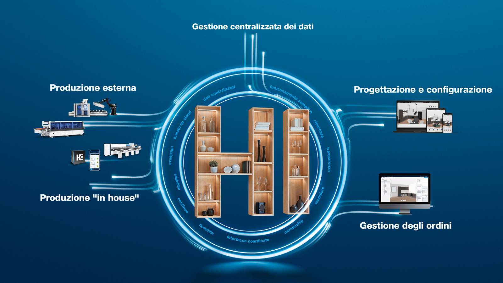 Diciamo "HI" a HOMAG INTELLIGENCE: la prima e unica piattaforma basata su cloud sul mercato che offre un processo fluido, dalla vendita del mobile fino alla produzione sulla macchina. Collegamento in rete continuo e con gestione centralizzata dei dati.