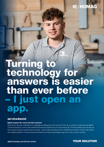 機械のエラーメッセージを自動的に解決: すべての機械オペレータにデジタルサポートを提供する Web アプリ serviceAssist を利用して、生産を継続しましょう。エラーメッセージが表示されたときにこのアプリでサポートを受け、サービス担当者から直接サポートを受けなくても、実証済みの解決策を見つけることができます。
