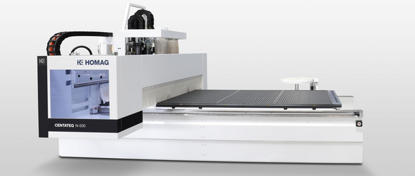 Vor der Investition in die Säge-Lager-Kombination diente etwa die Hälfte der Maschinenhalle als liegendes Plattenlager. Der Sägenführer hatte alles im Blick und kümmerte sich mit dem Gabelstapler selbst um die Materialversorgung. Das funktionierte eigentlich ganz gut, solange der Mann nicht krank oder im Urlaub war. Die Schreinerei nutzte die Chance, den Engpass zu beseitigen und das Lager so zu automatisieren, dass jetzt jeder damit zurechtkommt. Die durch das angebaute Flächenlager frei gewordenen Flächen haben die Verdoppelung des Durchsatzes erleichtert. Neben der Säge-Lager-Kombination betreibt die Schreinerei auch noch die Kantenanleimmaschine EDGETEQ S-500 mit Rückführung, das vertikale Bearbeitungszentrum DRILLTEQ V-500 (BHX 200) sowie für das Nesting die CENTATEQ N-500 (BHP Vantage).