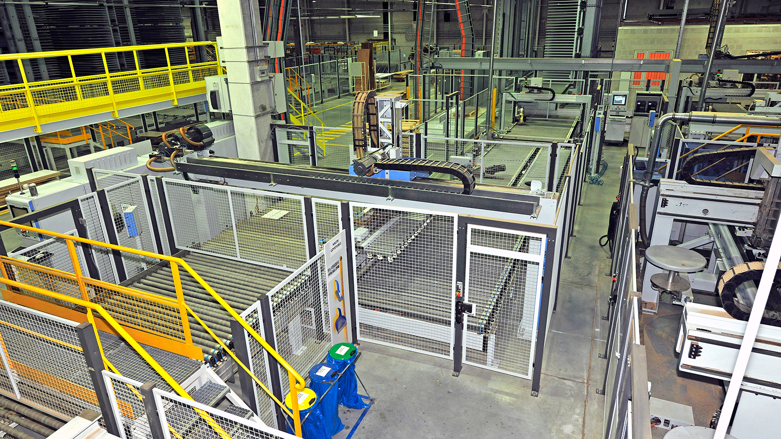 Auf der Fertigungsstraße geht es nun weiter zu einem Sortierpuffer, der die Möbelteile in die korrekte Reihenfolge für Montage und Versand bringt. Danach erhalten die Teile Bohrlöcher und Ausfräsungen sowie Gewindemuffen und Holzdübel. Der Sortierpuffer reicht bis unter die Hallendecke, sieht aus wie ein riesiges Regal und kann 4.000 Teile vorhalten. So dient er als Zwischenlager zur Entkopplung der hochverketteten Prozessschritte und sorgt gleichzeitig dafür, dass kleinere Unterbrechungen nicht sofort den gesamten Ablauf zum Stillstand bringen. Nach der Qualitätskontrolle werden die Teile entweder montiert oder einzeln verpackt und verladen. Pro Jahr ermöglicht die neue Anlage die Produktion von bis zu 500.000 Möbeln.