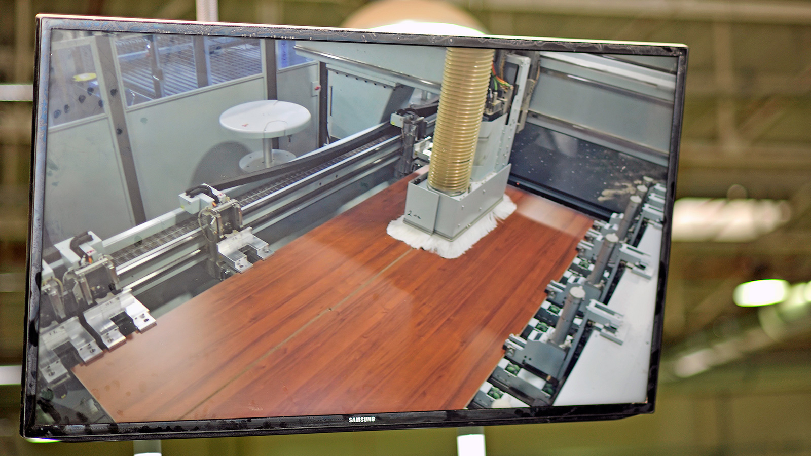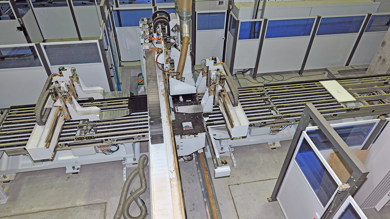 Den Ausschlag für den Auftrag gab jedoch ein anderer Punkt. Die HOMAG Group gehört zu den wenigen Anbietern von Holzbearbeitungsmaschinen, die eine komplette Fertigungsstraße aus einer Hand liefern können. „Selbst die Leittechnik kommt von uns“, sagt Harald Sieber. Diese Software steuert den Fertigungsprozess und weiß immer, wo welches Teil wie bearbeitet werden muss. Die einzelnen Maschinen arbeiten zusammen wie ein großes Team. „Alle Arbeitsschritte sind gut durchdacht und exakt aufeinander abgestimmt“, ergänzt Sieber. Dafür sorgen hochqualifizierte Ingenieure, Techniker und Programmierer. In der Regel wird der Betrieb einer neuen Anlage im Vorfeld viele Male am Rechner simuliert. Virtuelle Werkstücke durchlaufen den Fertigungsprozess auf dem Bildschirm. Sägen, Kantenbearbeitung, Bohren – alles wird getestet und verbessert, bevor die Anlage in den Bau geht.
