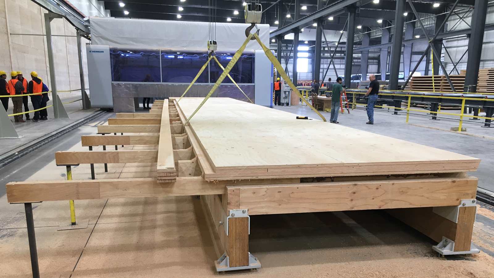 Der Brettsperrholz-Markt in den USA ist in den letzten 10 Jahren durch den Aufschwung einiger OSB-Hersteller stark unter Druck geraten und auch der globale Wettbewerb nimmt immer mehr zu. Aufgrund dieser Entwicklungen fasste Freres Lumber die Entwicklung eines neuen, qualitativ hochwertigen und wettbewerbsfähigen Sperrholzprodukts ins Auge. In enger Zusammenarbeit mit der Oregon State University entstand dabei das patentierte Produkt Mass Plywood Panel (MPP). Laut Kyle Freres, CEO Freres Lumber, besteht ein großer Unterschied zwischen MPP und CLT. Während CLT typischerweise aus 38 mm starken Platten besteht, wird MPP aus einzelnen Furnierlagen gefertigt. Die Ausrichtung der Furniere, die Lage innerhalb der Platte sowie die strukturelle Qualität werden sorgfältig ausgewählt. Im Vergleich zu CLT weist MPP bei ähnlichen Festigkeitswerten circa 20 % geringere Plattendicken auf. Allen Beteiligten war klar, dass für die erfolgreiche Umsetzung automatisierte Produktionsmethoden notwendig sind. Die größte Herausforderung bestand darin, dass die einzelnen Produktionsschritte für dieses völlig neue Produkt erstmal neu konzipiert werden mussten. Dabei arbeiteten die drei Unternehmen Stiles, WEINMANN und Minda sowie lokale US-Dienstleistern eng zusammen. Es war weder möglich, sich von Branchenkollegen beraten zu lassen, noch gab es vergleichbare Produktionsmethoden, die als Richtlinie hätten dienen können. Rückblickend beschreibt Kyle Freres die Zusammenarbeit mit den drei Firmen als äußerst erfolgreich: "Uns wurde geholfen einzigartige Lösungen zu finden, die es uns ermöglichten, die Entwicklung unseres innovativen neuen Produkts voranzutreiben." Zu den Neuinvestitionen gehören ein WEINMANN Massivholzportal WALLTEQ M-560, eine X-337 hydraulische Presse von Minda sowie automatisierte Handlingsysteme von Stiles Machinery. "Die Integration der Maschinen in unsere Produktion hat uns enorm geholfen, große Materialmengen sicher, schnell und effizient zu verarbeiten. Die Kompetenz und Unterstützung, die wir vom Zeitpunkt der Planung bis hin zum Produktionsstart und darüber hinaus erhalten haben, war fantastisch.Mit der Produktionslinie haben wir ein einzigartiges Maß an Flexibilität erreicht", berichtet Kyle Freres.