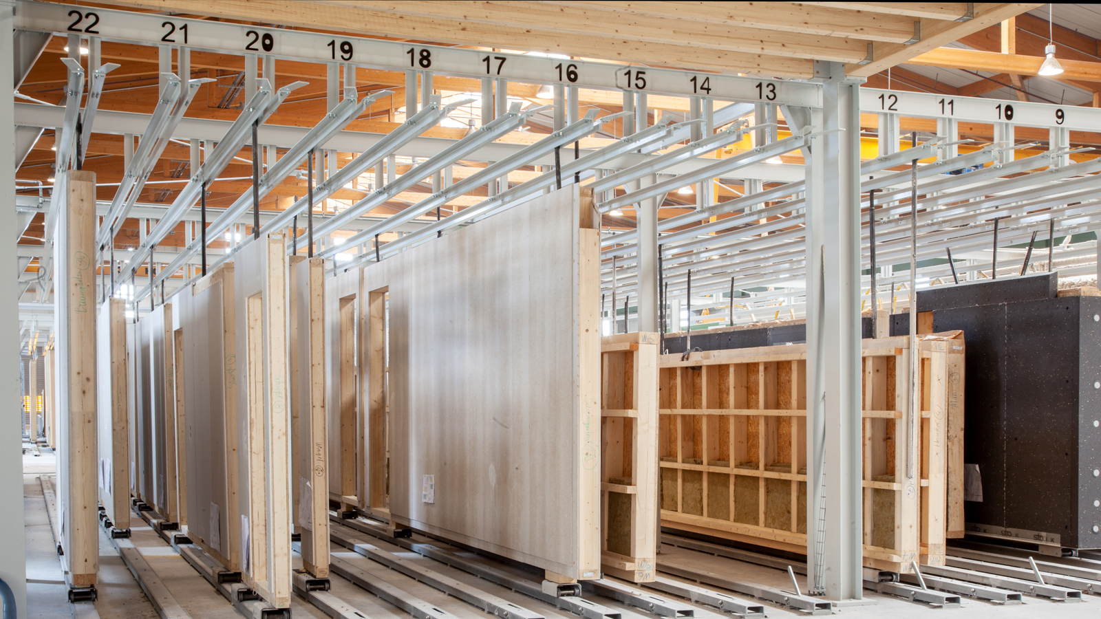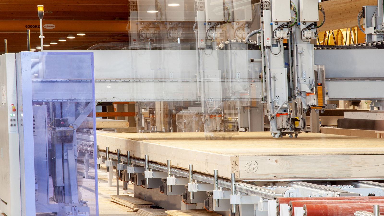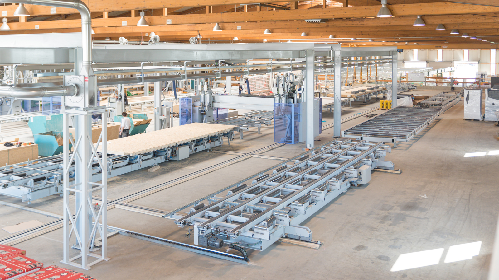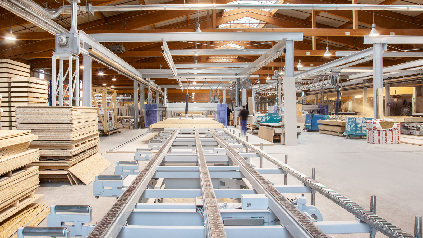 To miejsce zapewnia dobry widok na nową linię produkcyjną przedsiębiorstwa: maszyna do odwiązywania Weinmann BEAMTEQ B-560 z w pełni automatycznym załadunkiem, stacja montażu szkieletu FRAMETEQ F-700 z mostem wielofunkcyjnym WALLTEQ M-380 z dwoma stołami roboczymi, na których pierwsza warstwa pokrycia elementów jest nakładana za pomocą próżniowego podnośnika płyt, a następnie obrabiana całkowicie automatycznie.