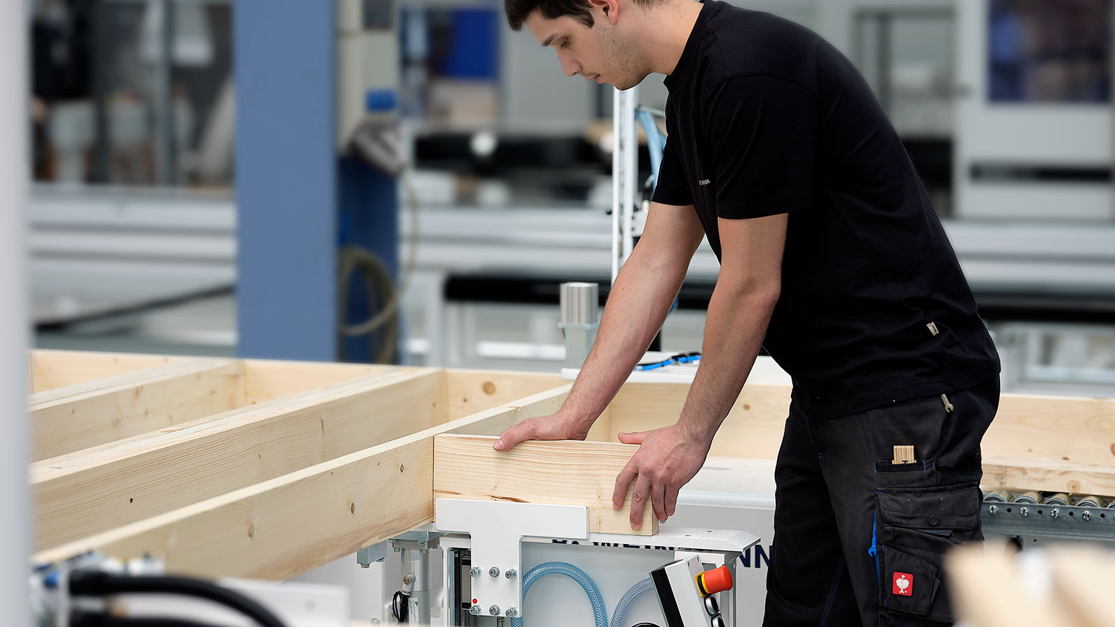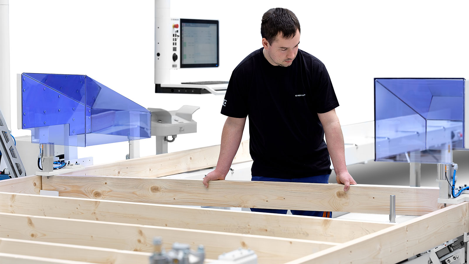 Maszyna ta wyznacza nowe kierunki w produkcji kompletnych, drewnianych konstrukcji szkieletowych.