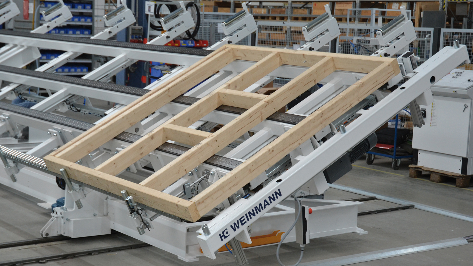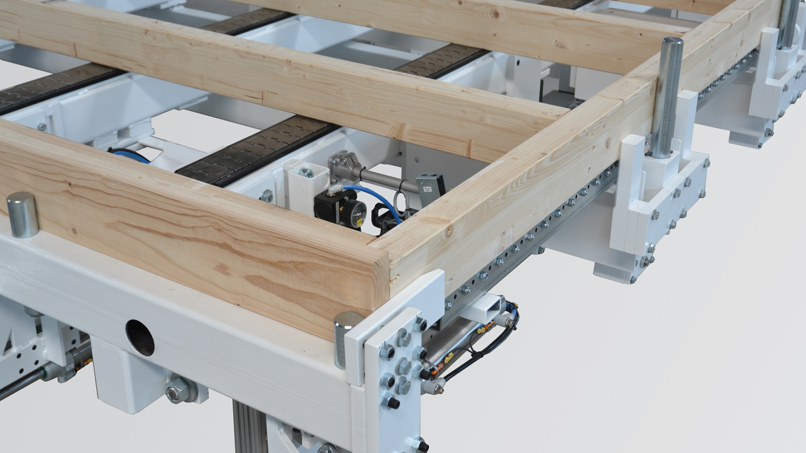 Stół BUILDTEQ A-500 służy obracania elementów, wyrównywania ich przed nałożeniem poszycia i zamocowania go, transportu wzdłuż i w poprzek oraz ustawiania przed magazynowaniem.