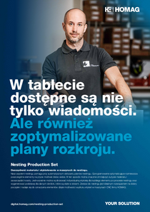 Spójne dane obróbcze – w produkcji drukuje się etykietę dla każdej zagnieżdżonej części za pomocą asystenta cyfrowego productionAssist Nesting. Dzięki temu każdy obrabiany element posiada wszystkie istotne informacje. Obejmuje to np. nazwę zlecenia, informacje o elemencie i oklejeniu powierzchni lub do dwóch kodów QR dla programów CNC.
