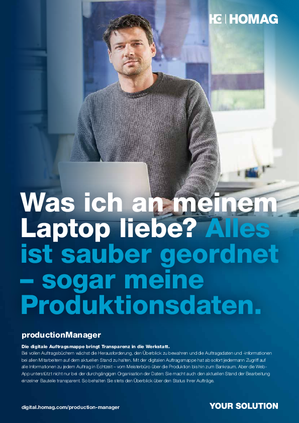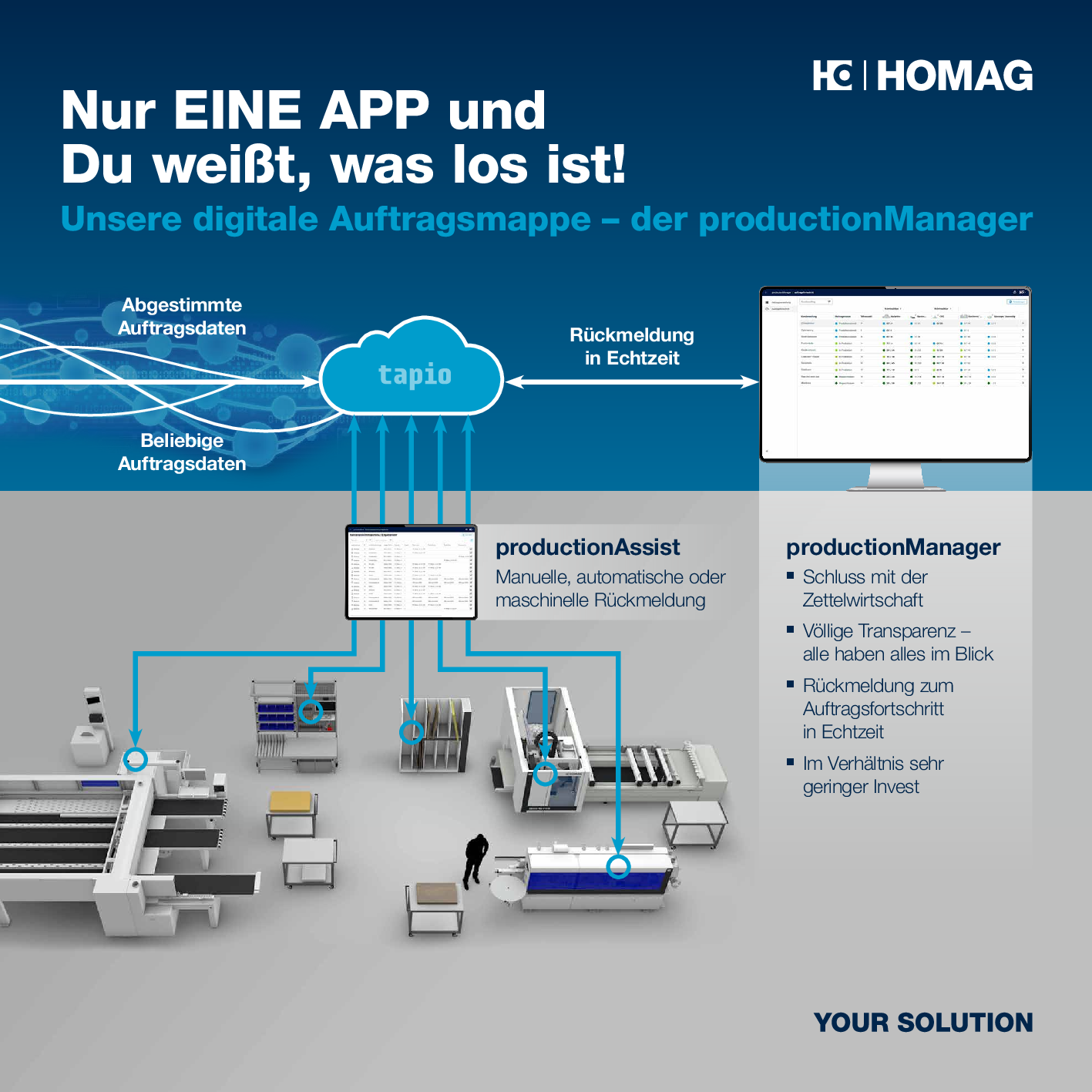 Das Rückgrat in der Kommunikation der HOMAG Apps: Der productionManager sorgt dafür, dass die richtigen Infos an der richtigen Stelle in Arbeitsvorbereitung und Werkstatt erscheinen.