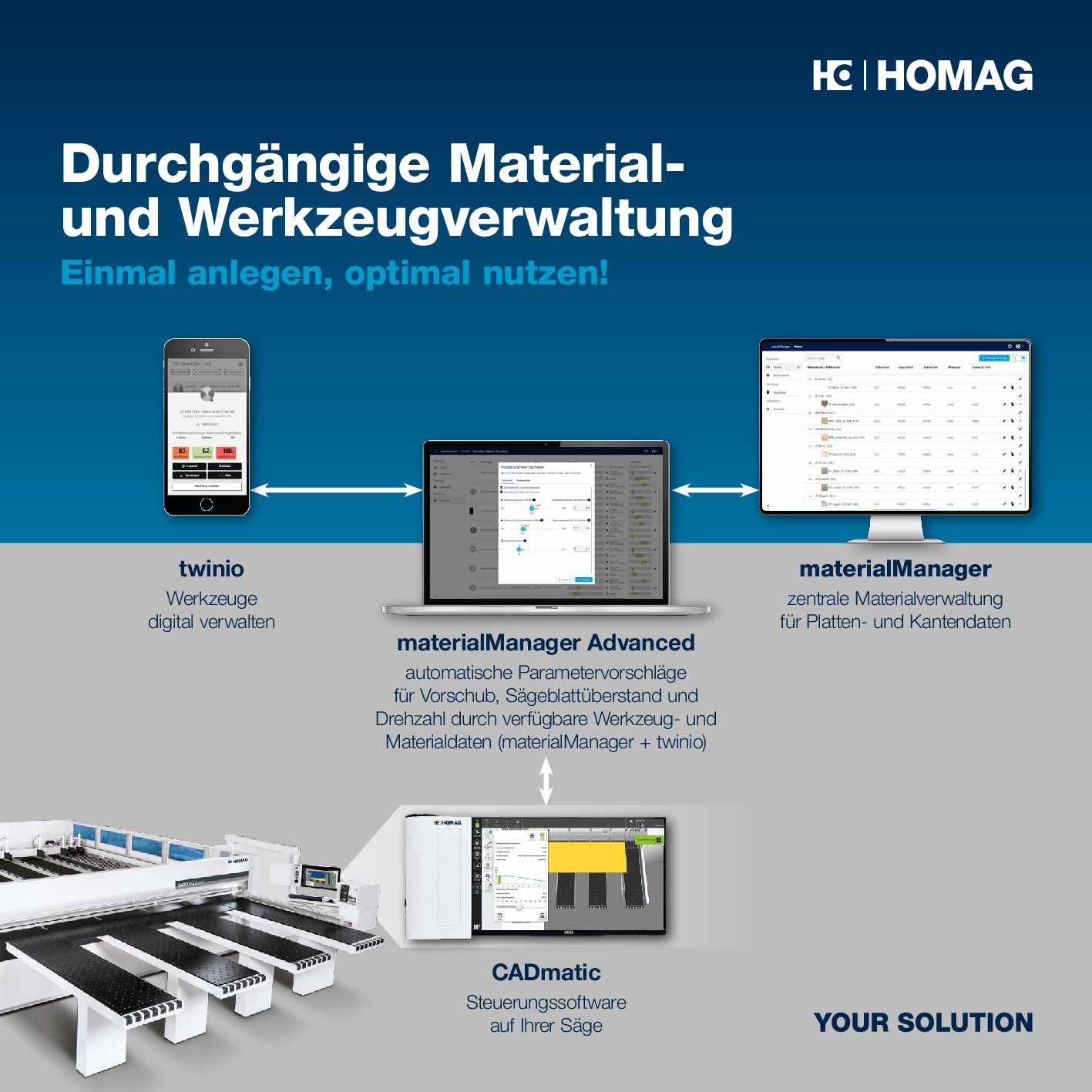 Wer schon einmal für den Zuschnitt zuständig war, weiß, dass eine gleichbleibende Bearbeitungsqualität keine Selbstverständlichkeit ist. Eine große Materialvielfalt, mehrere Maschinenbediener und verschiedene Sägen sind nur drei der potenziellen täglichen Herausforderungen. Darüber hinaus stellen sich folgenden Fragen: Wie kann die Standzeit der Werkzeuge erhöht werden? Und wie können die Arbeitsabläufe einfach und effizient gestaltet werden? Mit dem materialManager Advanced bekommen Sie hier die Rundum-Unterstützung.