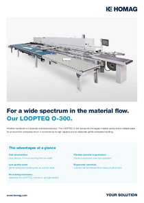 O LOOPTEQ O-300 está perfeitamente harmonizado em termos de tamanho, capacidade e velocidade com as máquinas de colagem de orlas unilaterais do HOMAG Group