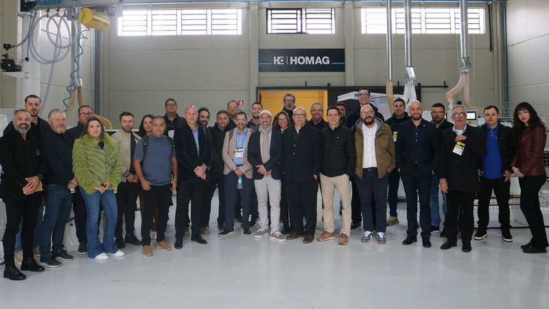 Além do estande na feira, a HOMAG convidou os visitantes a vivenciarem uma experiência completa no showroom, localizado a cerca de 10 minutos do pavilhão da FIMMA, no bairro Ouro Verde. O espaço, aberto durante todos os dias do evento, conta com uma linha de produção completa em operação, permitindo aos visitantes acompanharem, na prática, a aplicação das tecnologias apresentadas.