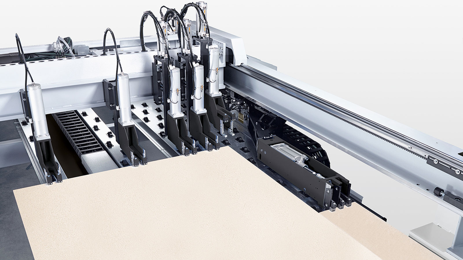 Устройство углового прижима: интегрировано непосредственно в пильную каретку для сокращения производственного цикла