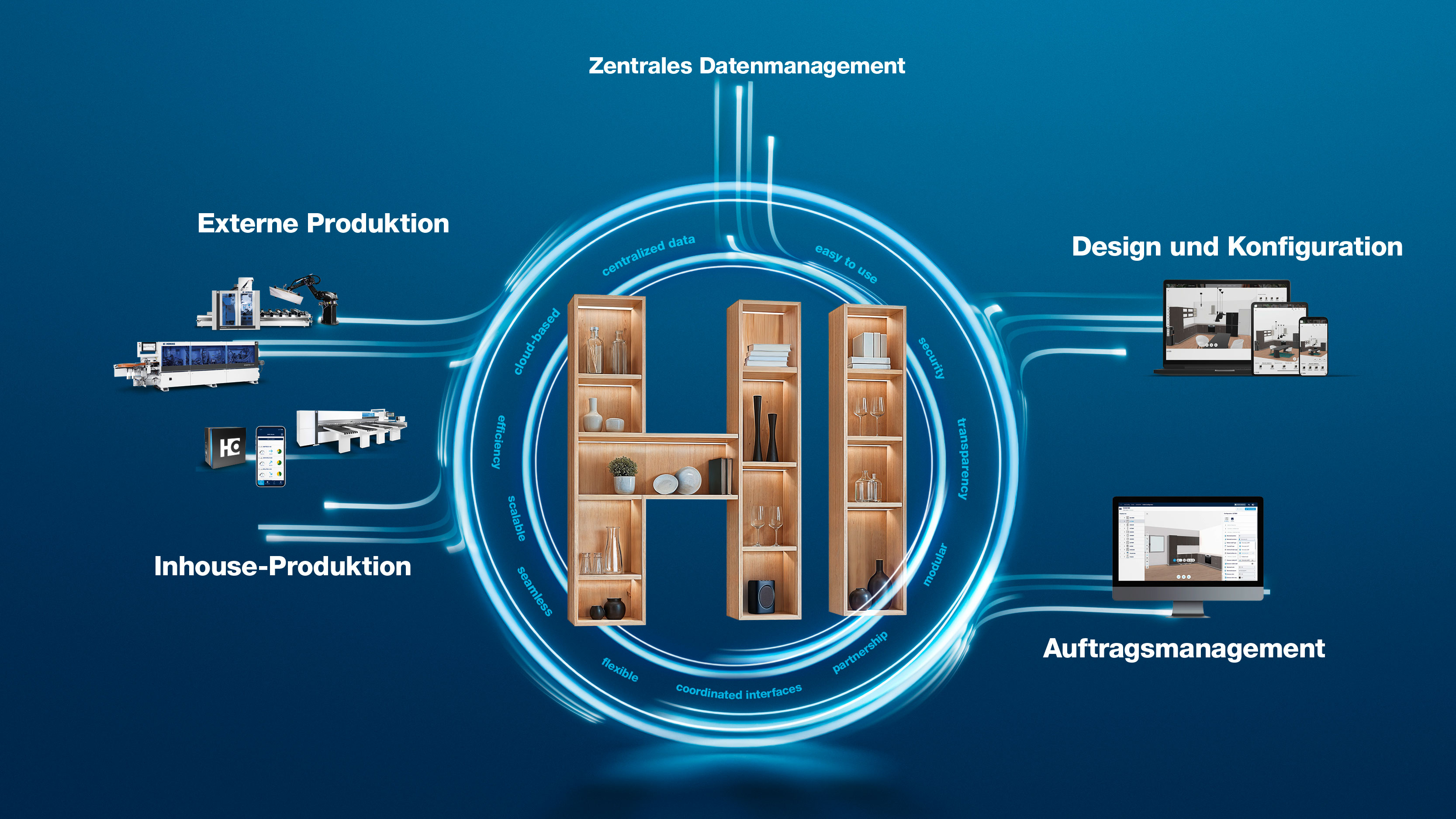 Mit HOMAG INTELLIGENCE bietet HOMAG keine einzelne Software, sondern eine offene Plattform, die alle entstehenden Daten in Möbelverkauf und -fertigung nahtlos miteinander verbindet – unabhängig vom Maschinenpark, der bestehenden Softwarelandschaft oder Betriebsgröße.