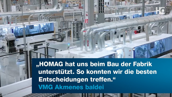 HOMAG hat bei der Fabrikplanung von den Anfängen an unterstützt und stellte entscheidende Planungsdaten bereit. So wurden die HOMAG Lösungen für den kompletten Herstellungsprozess an die Bedürfnisse der VMG Group angepasst.