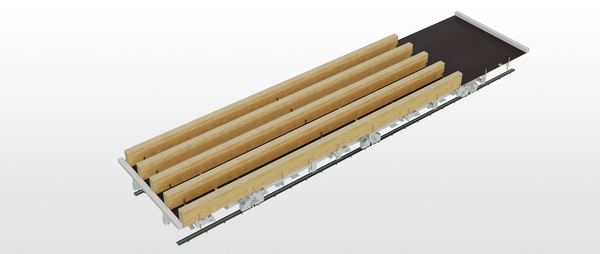 Bereits 2019 investierte man bei Bouwkomeet in eine zweite Fertigungslinie, die bis auf einen Unterschied mit der ersten identisch war: Statt der 10 m langen Tische, auf denen man bis 12 m lange Elemente produzieren kann, wählte man nun eine kompaktere Lösung mit Tischen von 8 m Länge. Sonst gibt es keinen Unterschied zwischen beiden Linien, deren maximale Elementbreite bei 3,50 m liegt. Beide sind nach Maß auf die besonderen Anforderungen des niederländischen Kunden zugeschnitten und beginnen mit zwei in Linie stehenden Zimmermeistertischen BUILDTEQ A-500. Darauf wird parallel das Balken- bzw. Riegelwerk für zwei Wand-, Decken oder Dachelemente gespannt, das mit drei WEINMANN Abbundanlagen BEAMTEQ abgebunden wurde. Es folgen das Anbringen der Folie und der Beplankung, bevor eine Multifunktionsbrücke WALLTEQ M-380 diese mit den beiden Klammergeräten befestigt und je nach Bearbeitung fräst, bohrt oder sägt. Dabei sind die Anschlagsseiten der Tische variabel, so dass man sowohl rechte als auch linke Dachelemente fertigen kann. So werden die Dachelemente beim anschließenden Wendevorgang aufgestellt, ohne dass sie auf den überstehenden Dachlatten stehen. Zweite Besonderheit: Die Dach- und Deckenspanner sind individuell positionierbar. Beim Fertigen von Dachelementen werden die Positionen der Sparren vorgegeben, bei Wandelementen können die Spanner entnommen werden, so dass Schwelle und Rähm eingelegt werden können. Das macht die Anlage hochflexibel für die unterschiedlichsten Elemente. Über die integrierte Aufstellfunktion wenden die beiden Zimmermeistertische die Elemente und übergeben diese an den nachfolgenden Arbeitstisch, der in Längsrichtung der Linie verfahrbar ist. Hier werden die Dämmung und – je nach Elementtyp – die einzelnen Beplankungslagen bzw. die Lattung montiert. Restarbeiten werden auf einer Rollenbahn erledigt, die man als Puffer nutzen kann. Abschließend werden die Elemente zum nächsten Arbeitstisch gefördert. Die mit einem Lattenmagazin ausgestattete Multifunktionsbrücke positioniert und befestigt die Lattung und sägt diese passgenau zu. Bei andelementen übernimmt die WALLTEQ M-380 die Befestigung und die abschließende Bearbeitung der äußeren Beplankung. Als Fassade werden in der Regel robuste, aufgeklebte Klinkerriemchen eingesetzt. Derzeit kann man in Haaksbergen etwa 20 einfache Dachelemente pro Tag und Anlage fertigen, die man in die gesamten Niederlande ausliefert.